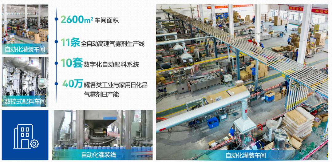 信鵬化工擁有甲、乙、丙類立體倉(cāng)庫(kù)各一棟,2022 年投入落成 3600 平方米的專業(yè)級(jí)氣霧劑化妝品車間,符合 GMP 車間 10 萬(wàn)級(jí)的潔凈度標(biāo)準(zhǔn)要求,同時(shí)搭配 4 條化妝品專用全自動(dòng)氣霧劑充填生產(chǎn)線及乳化配料系統(tǒng);公司擁有一支二十多年氣霧劑研發(fā)生產(chǎn)經(jīng)驗(yàn)的管理團(tuán)隊(duì), 技術(shù)和研發(fā)實(shí)力雄厚,為珠三角內(nèi)為數(shù)不多的在化工園區(qū)內(nèi)合規(guī)的專業(yè)氣霧劑制造基地;企業(yè)擁有自主進(jìn)出口權(quán),已取得危險(xiǎn)化學(xué)品生產(chǎn)許可證、化妝品生產(chǎn)許可證、農(nóng)藥生產(chǎn)許可證、ISO9001、ISO14001 質(zhì)量管理體系,IATF16949、ISO22716體系、GMPC 等資質(zhì)認(rèn)證。
